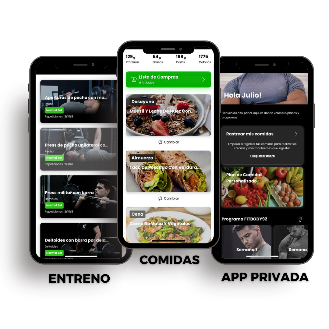 - âś… App privada con tus comidas, entrenos y seguimiento al alcance de tu mano.