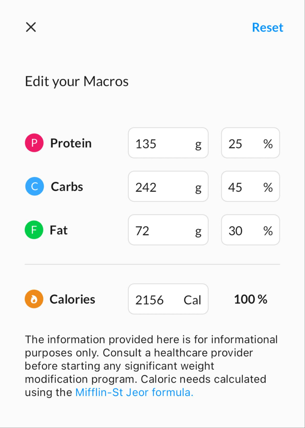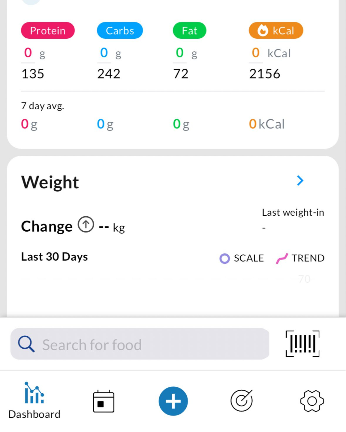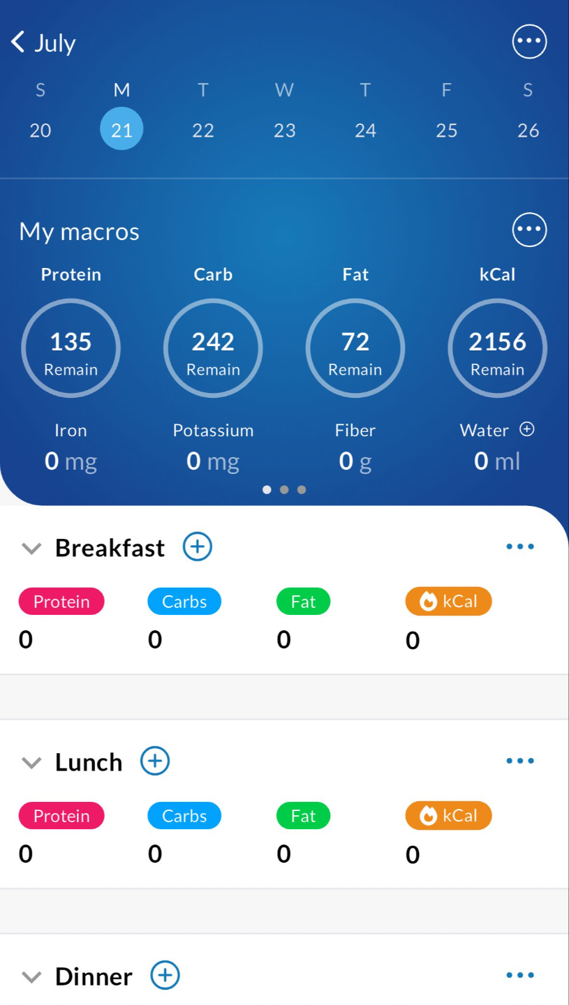 Controlas todo tu macros y lo que comes cada dia, puedes ver lo que te queda restante.