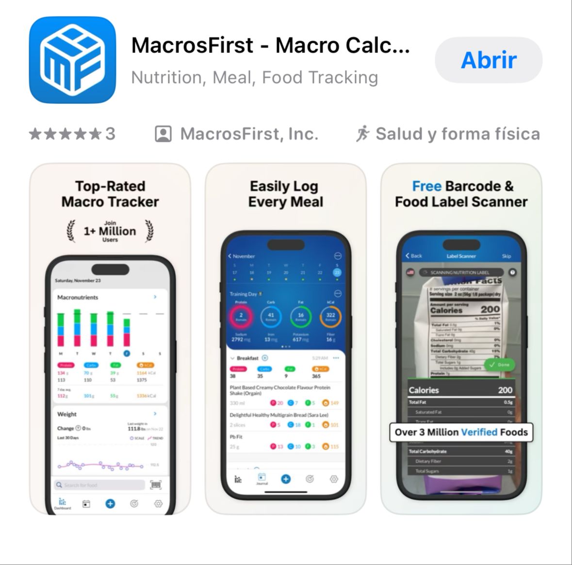 Esta app es gratuita y te permite hacer registro de tus macros.